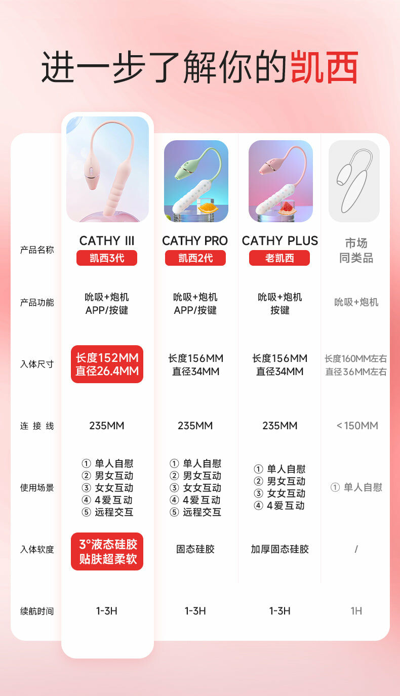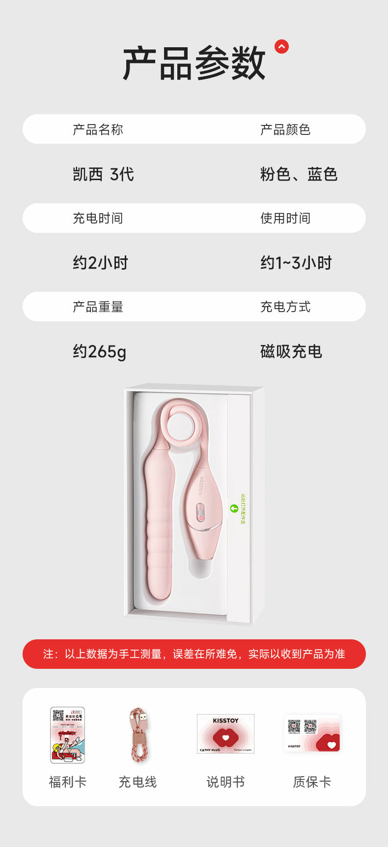 今代 KISSTOY Cathy 3 按摩棒沖擊模式由 5 檔升級為 10 檔,抽插沖擊敏感點,讓您更貼服磨擦碰撞,每次抽插也能激情的頂到深處。吸啜功能如同口愛的溫柔舒適感,讓您雙重享受,令您慾罷不能。