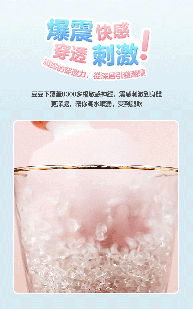 強勁摩打設計,5 種震動模式及 3 種震動速度搭配 66 mm 大呎寸頭部,能全面貼合敏感私處,深層喚醒隱藏在豆豆深處的 8000 多根敏感神經。極致快感,10 秒喚醒你的高潮,讓你輕鬆潮吹,體驗靈魂出竅的快感體驗。