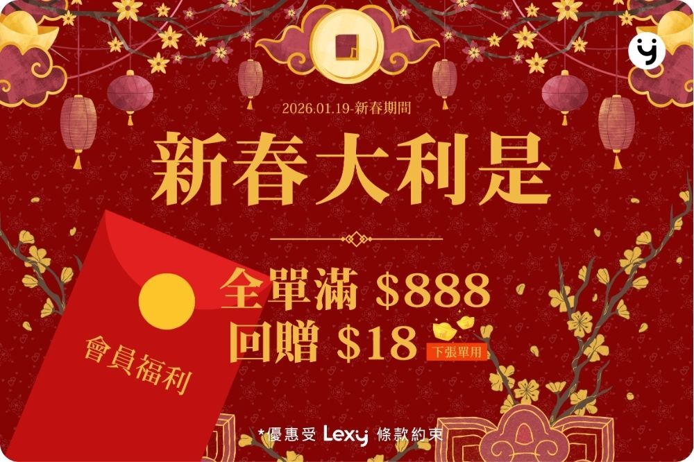 Lexy 會員凡購物 $888,即回饋 $18 購物金下次使用。