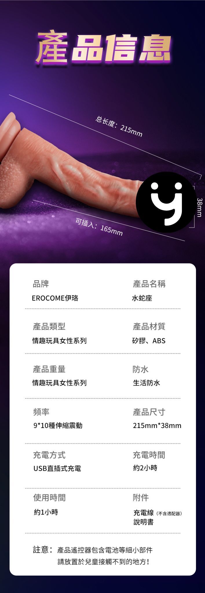 Ready for a dynamic pleasure experience? The EROCOME - Hydrae Pro Dildo redefines dildos with versatile thrills! Made from silicone and ABS, measuring 215 x 38mm, it combines vibration, thrusting, and heating with 9 modes, featuring a strong suction base and 10m wireless control for endless exploration.