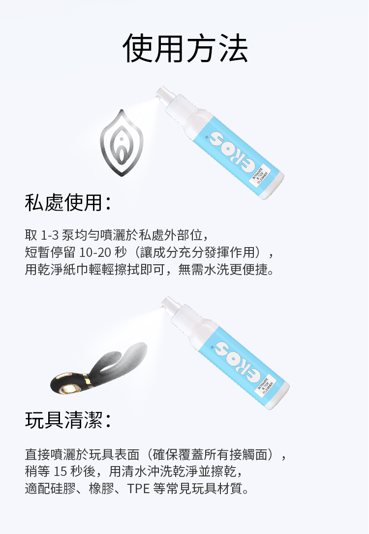 | 產品包括 | 私處及玩具二合一清潔噴霧 100 毫升 |