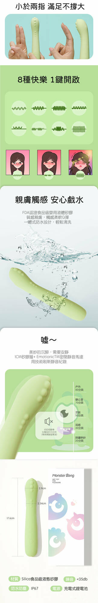 身材嬌巧、微翹弧度、最貼合 G 點的完美怪獸棒,兩指粗度、360° 柔軟棒頂、完美命中 G 點的微翹弧度,加上智能加溫敏感加倍,絕對是性價比極高的新手之選!