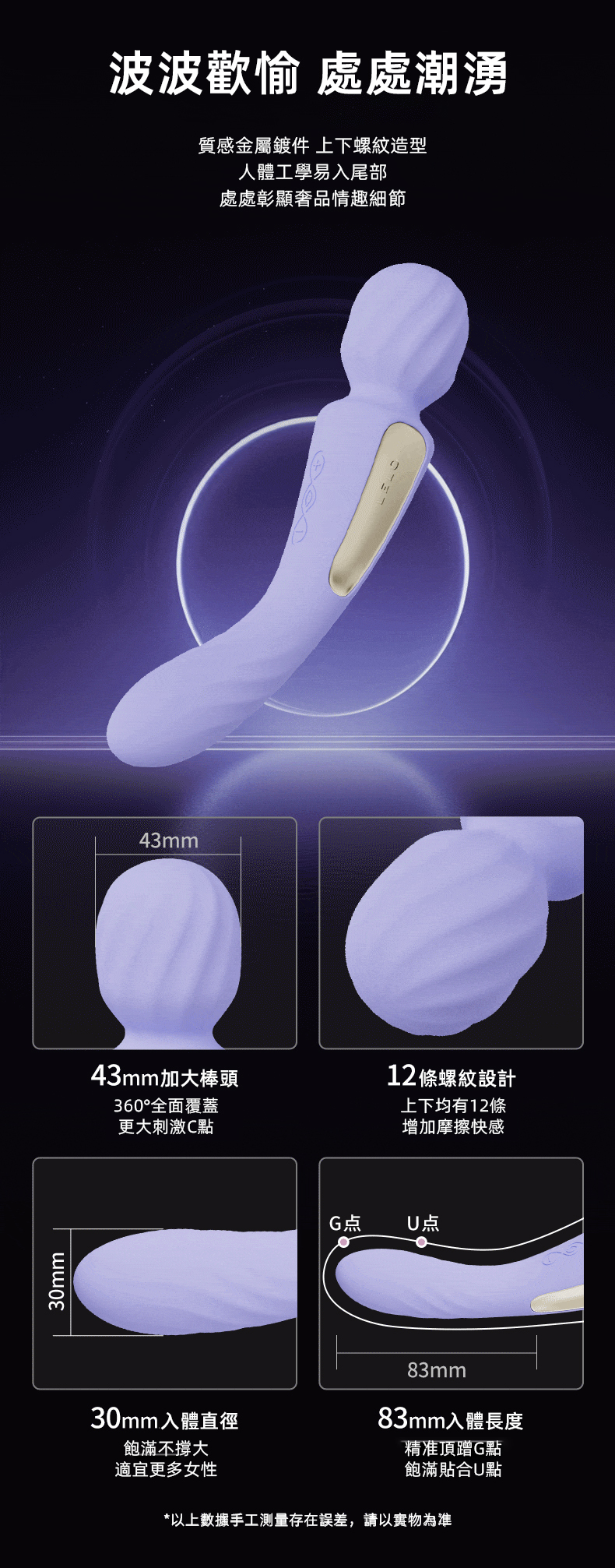• 雙頭雙馬達:一端刺激陰蒂,一端深入 G 點,雙重快感無限。