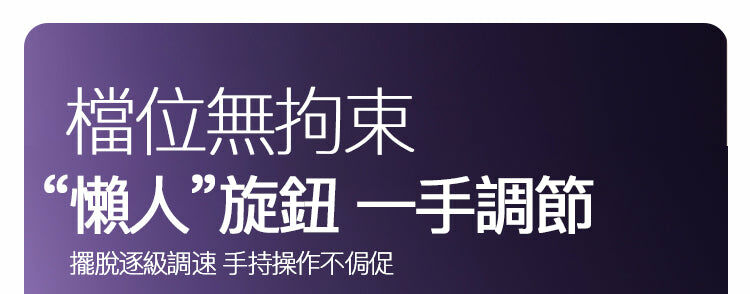 ZALO 為了讓女性更自由地探索 C 點,我們相較於普通 吸啜器 增加了無段調速的功能,270°自由調整尾端旋鈕角度,避免您手忙腳亂找不到合適的檔位。
