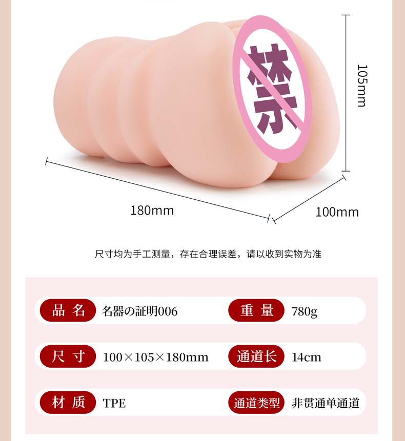 | 產品包括 | 名器の証明 No.6 長濱蜜璃 女優名器、潤滑液 |