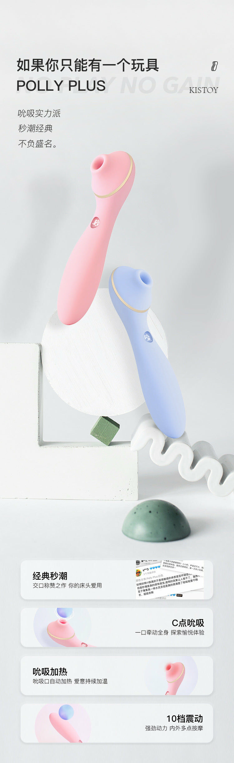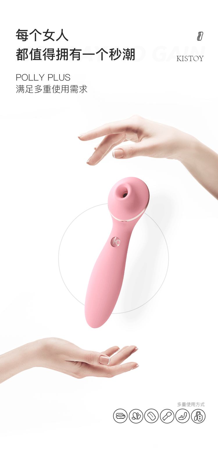 KISSTOY Polly Plus 結合了陰蒂吸啜器與 G 點震動按摩棒於一身,滿足了我們想「一棒多玩」的夢幻念頭。