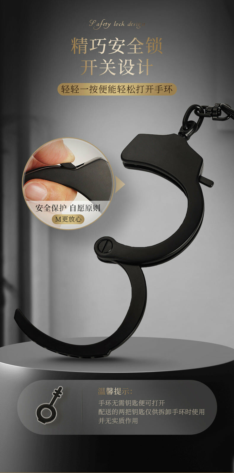 仿真創新的 SM 手銬,多卡位設計,輕鬆適應不同身材的手腕尺寸。