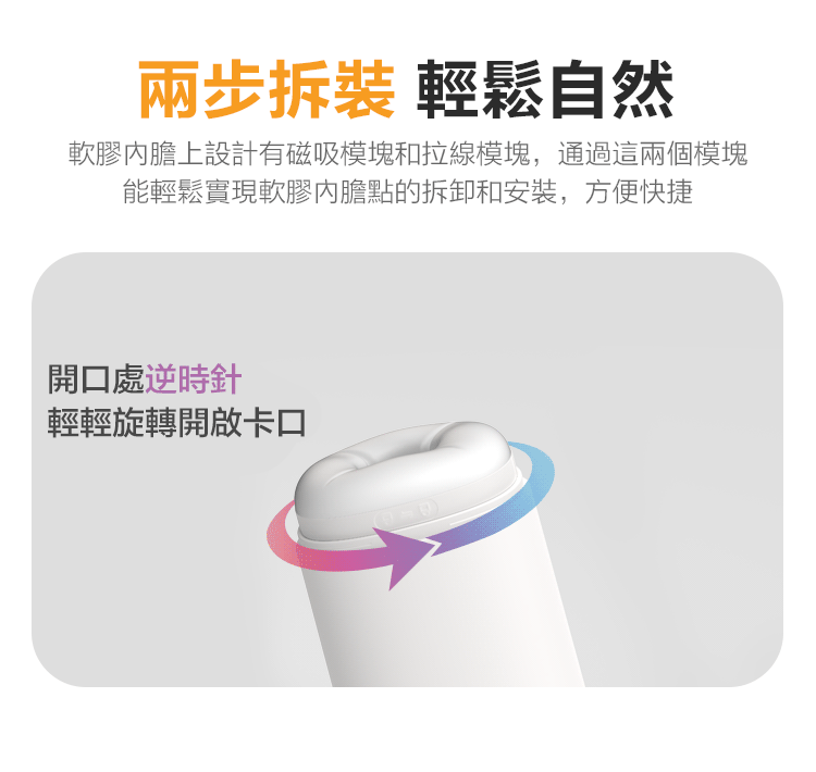 採體身工學設計,T 字造型一手掌握!內建智慧加熱模式,使用時更貼近人體實際溫度!清洗完內膽杯後,接上 Type-C 充電孔,開啟加熱功能後,即可烘乾飛機杯,省去惱人的清潔!