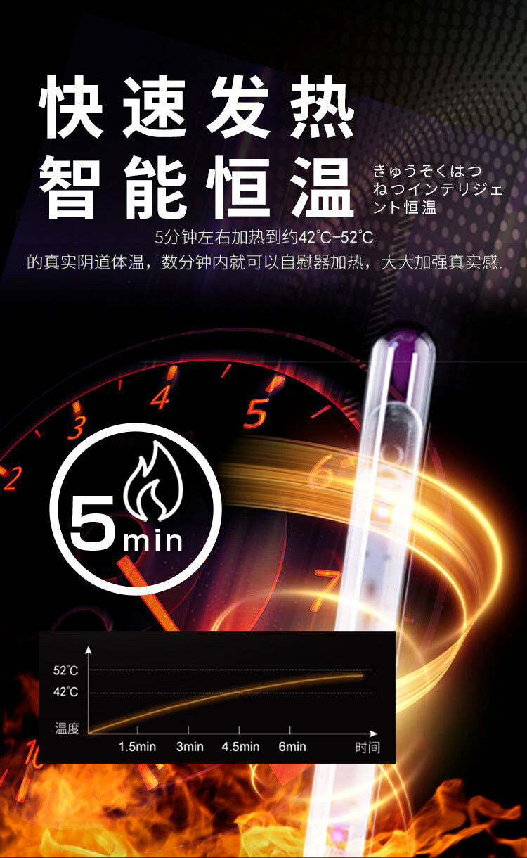 快速發熱 智能恆溫!5 分鐘左右加熱至約 42°C-52°C,數分鐘內就可以自慰器加熱,大大加強真實感。