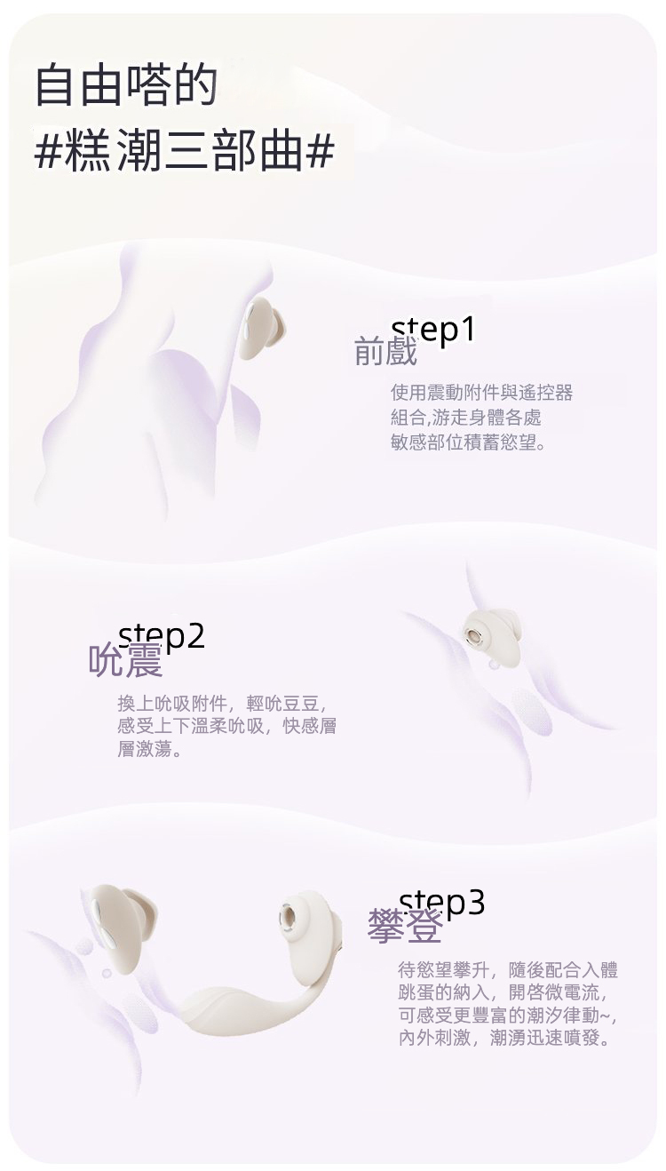 • 3 款選擇:吮吸款、震動款、震動款連吮吸附件套裝