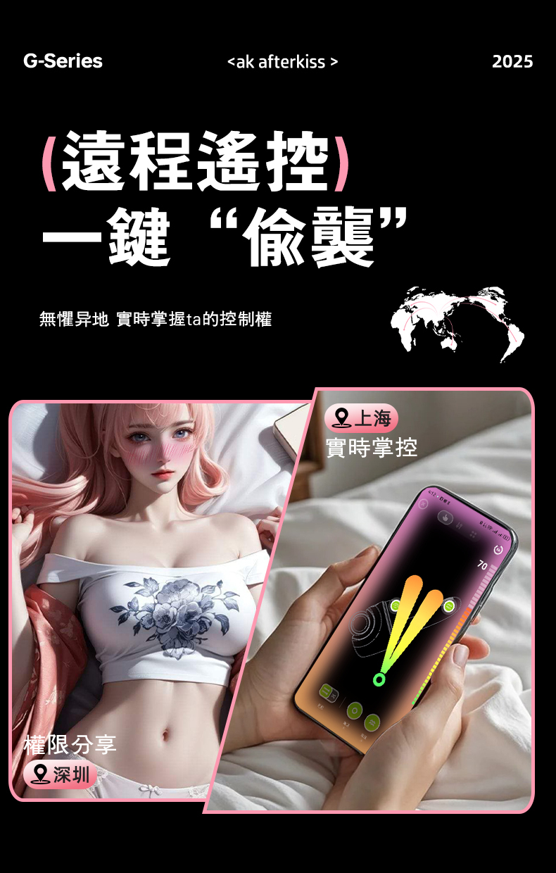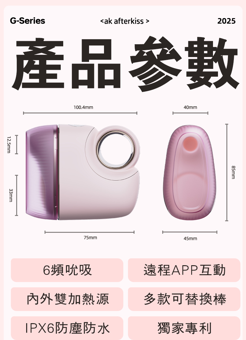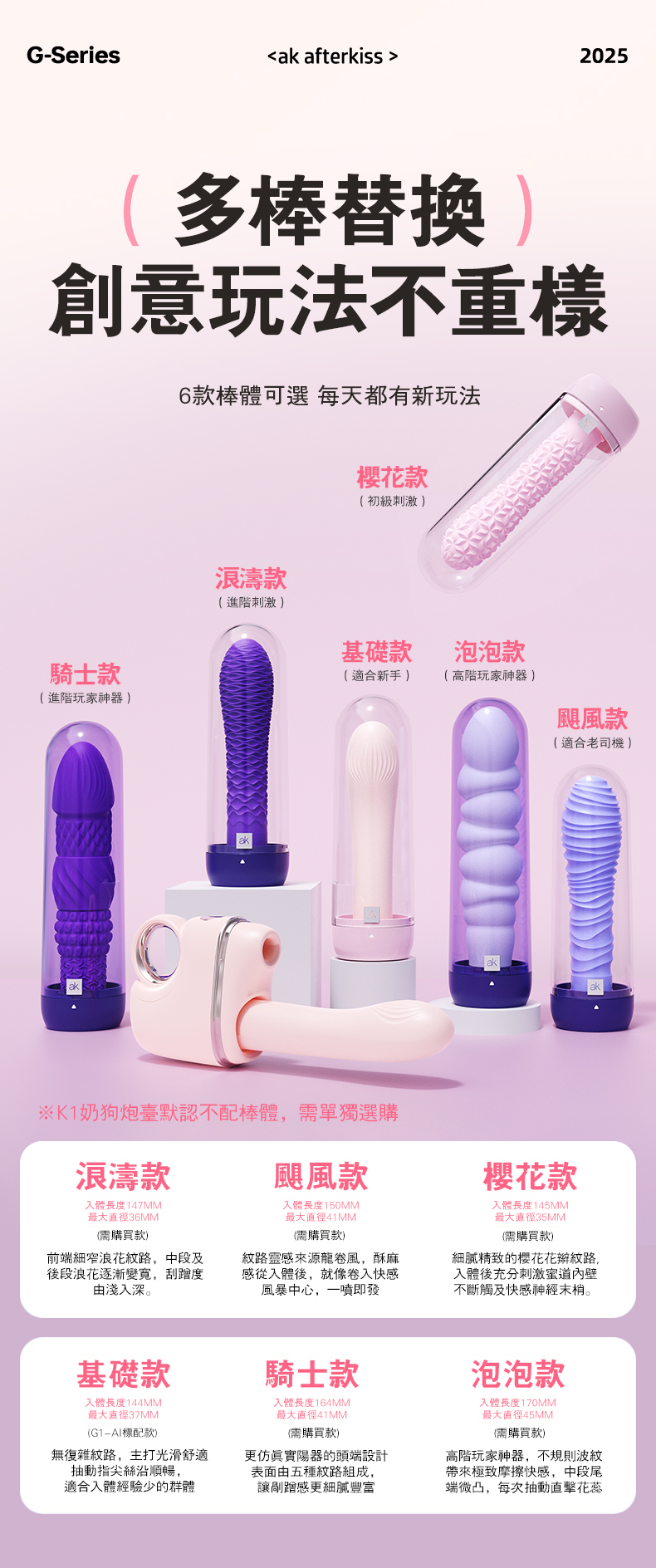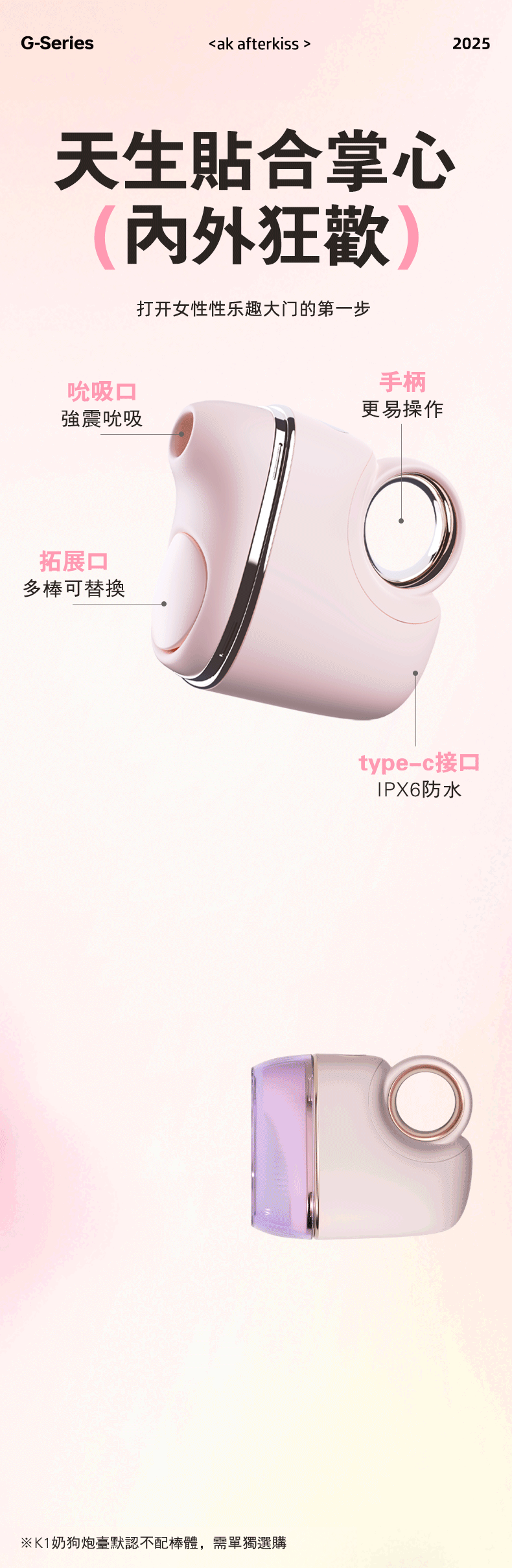 這款按摩棒以人體工學圓環設計,易於握持,提供多款替換棒體與 G 系列兼容,雙熱源恆溫模擬真實觸感,低於 60 分貝靜音,USB 充電確保 150 分鐘續航(連接按摩棒 90 分鐘)。隨附充電線與說明書,開箱即用。由 AK 於中國製造,品質卓越。立即選購,讓 AK - K1 遠程遙控小奶狗 迷你陰蒂吸啜震動按摩器為您點燃激情!