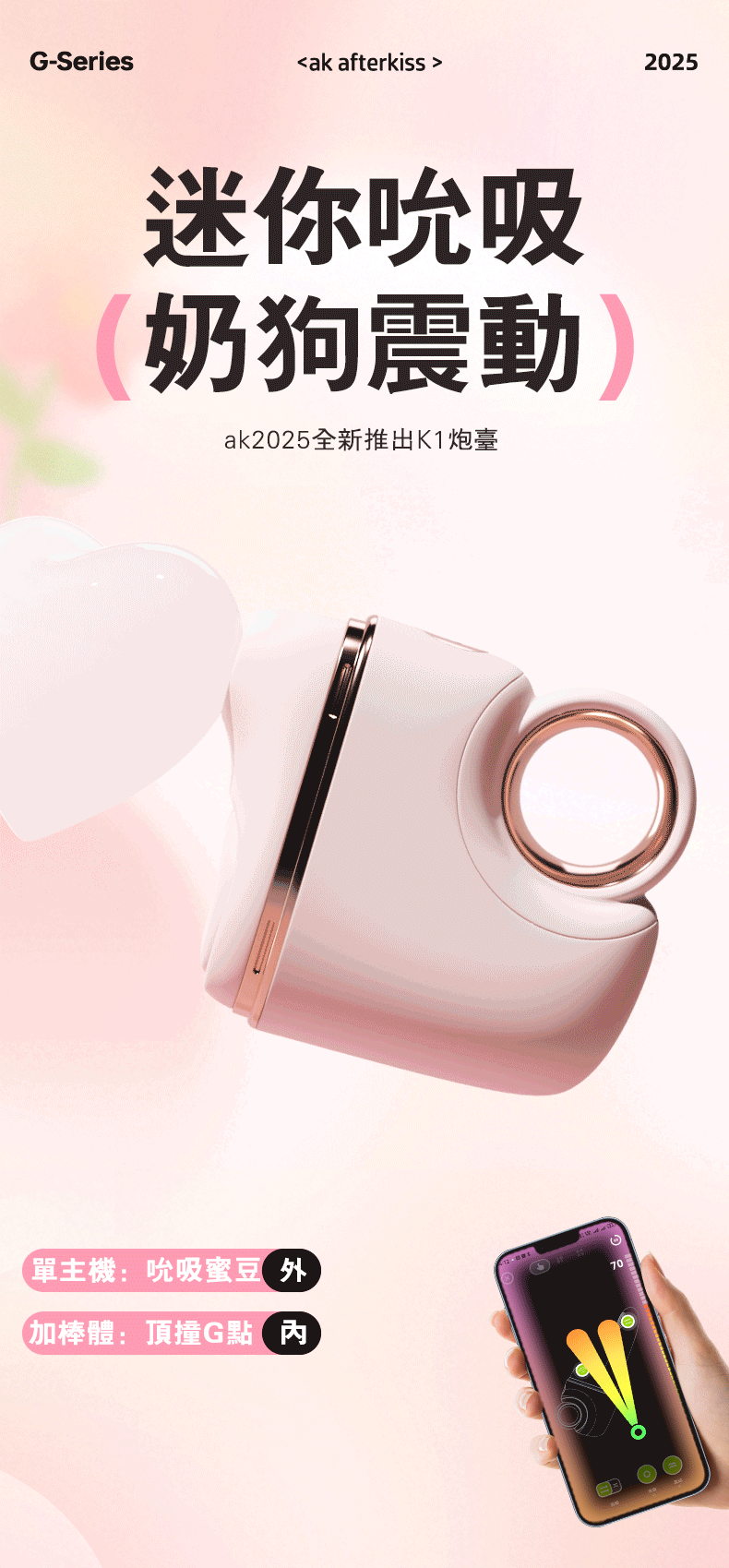 AK - K1 遠程遙控小奶狗 迷你陰蒂吸啜震動按摩器以矽膠提供吸啜抽插與 APP 操控快感。