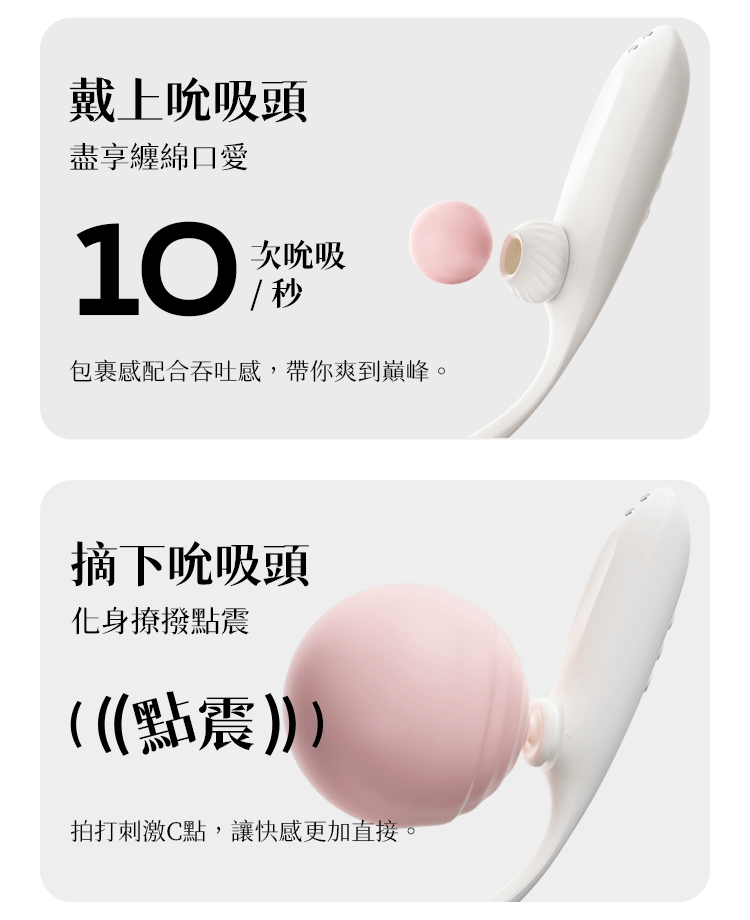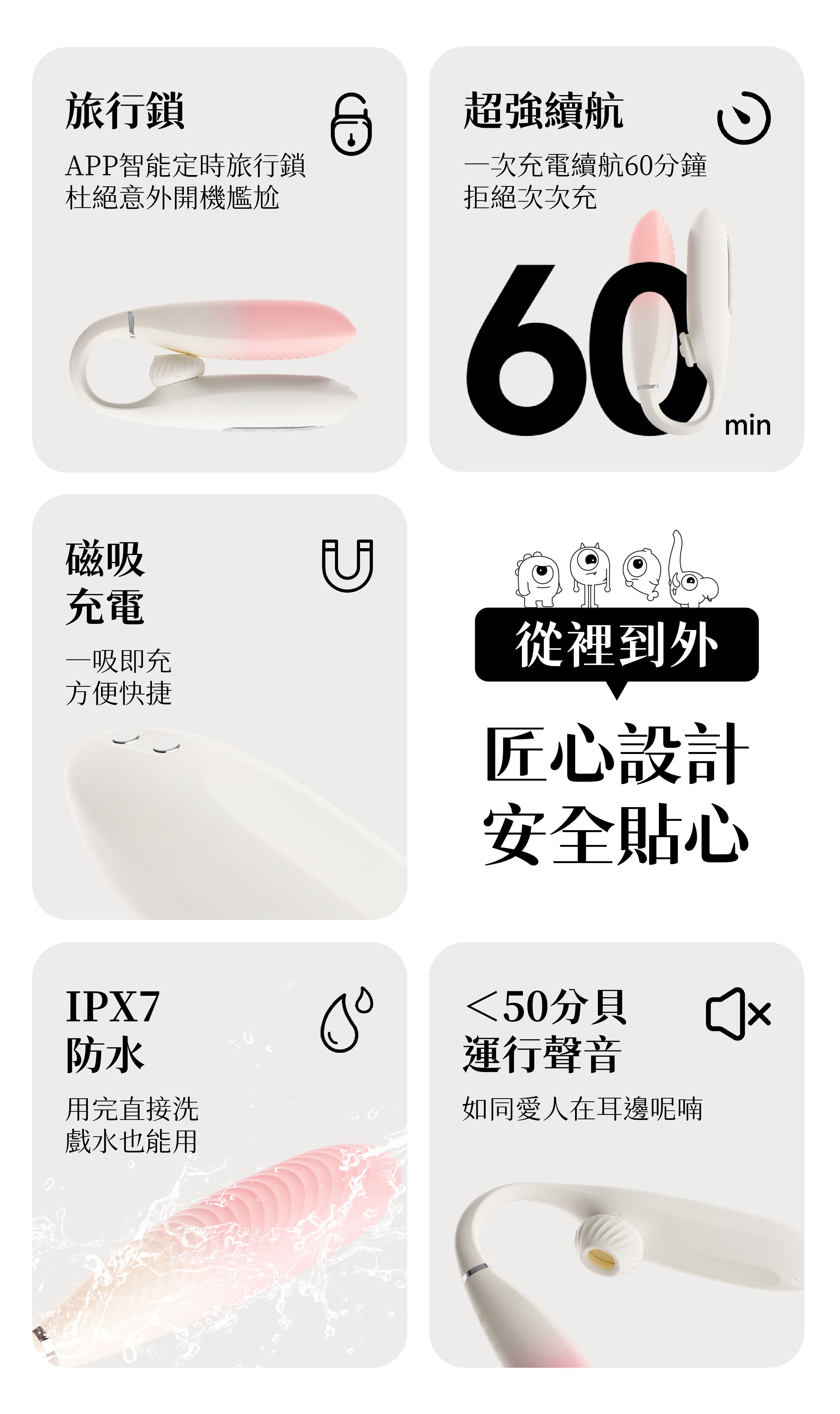這款按摩棒以 IPX7 防水與低於 50 分貝靜音設計,提供 10 種吸啜與振動模式,可拆式吸頭方便清潔,磁吸充電 60 分鐘續航。旅行鎖設計確保攜帶安全,適合隨時開啟私密冒險。立即選購,讓 SISTALK 小怪獸 - 魔炮按摩棒為您點燃無限快感!