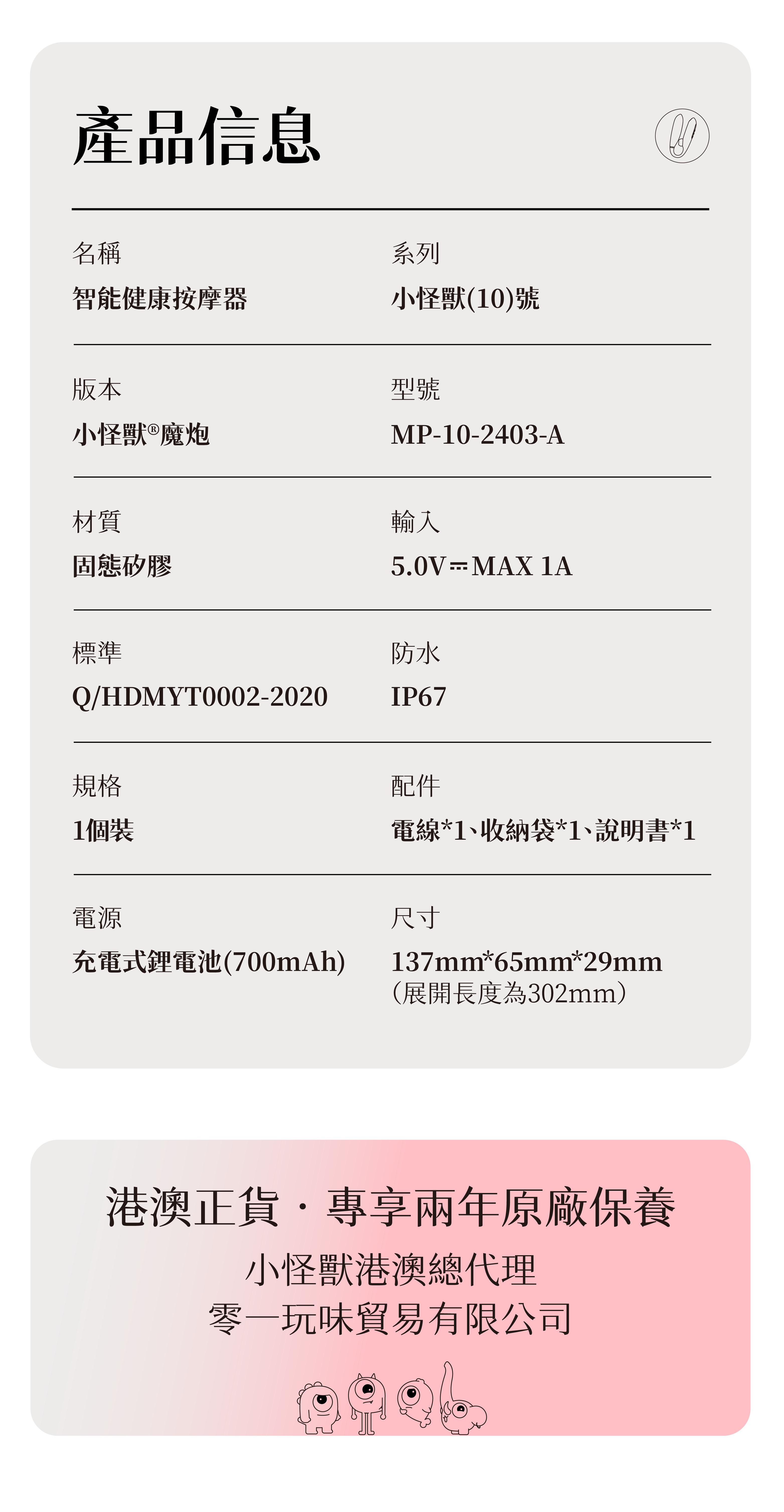 | 產品包括 | 按摩棒、充電線、收納袋、說明書 |