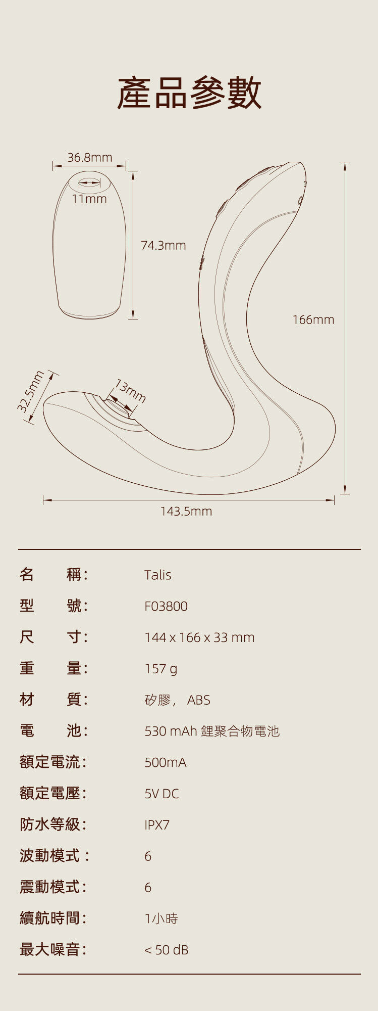 Talis 是 ZALO 埃及傳奇系列的 G 點振動器。設計靈感來自古老的埃及有一位智慧之神 Thoth ,相傳祂是古埃及文的發明者,祂負責守護文藝和書籍工作。